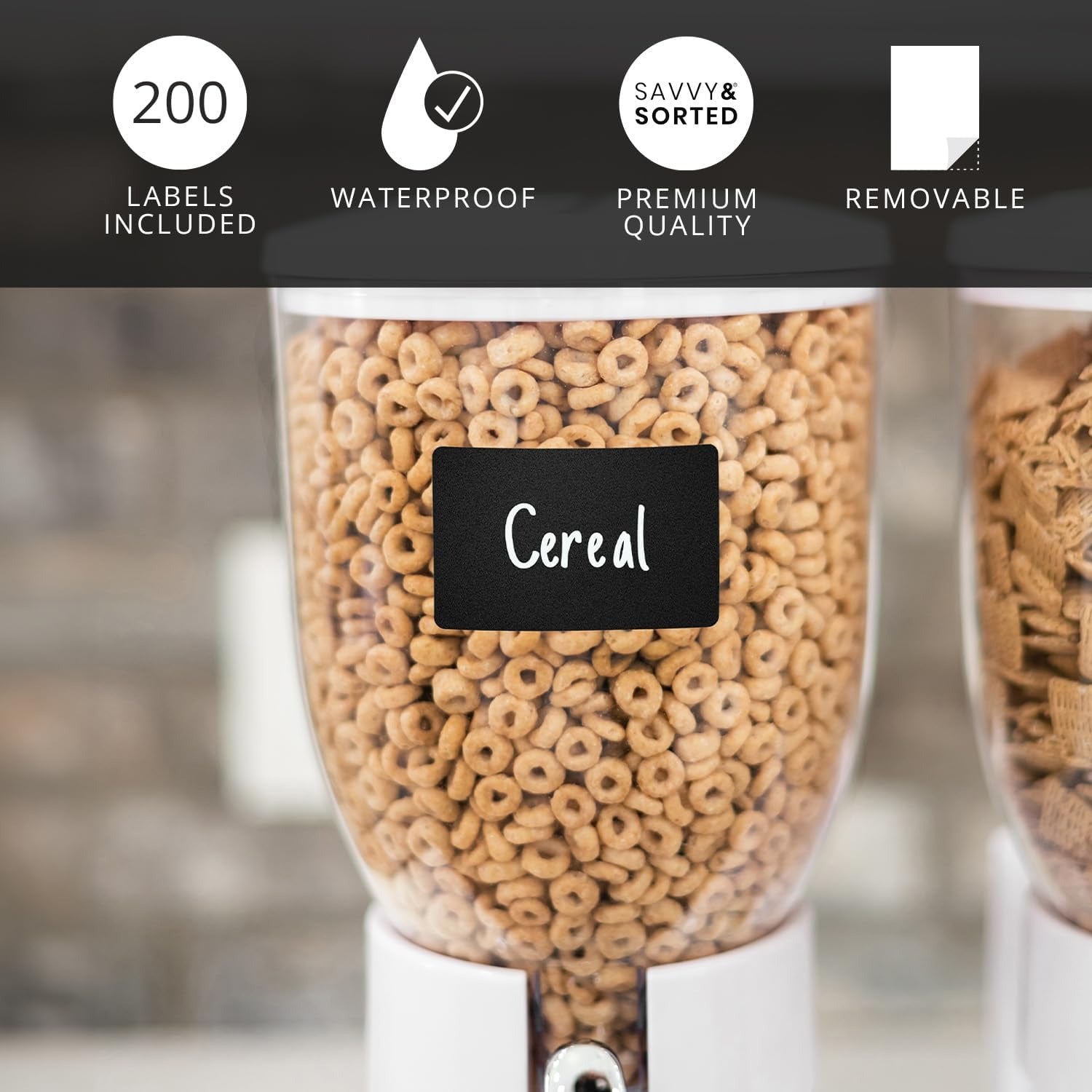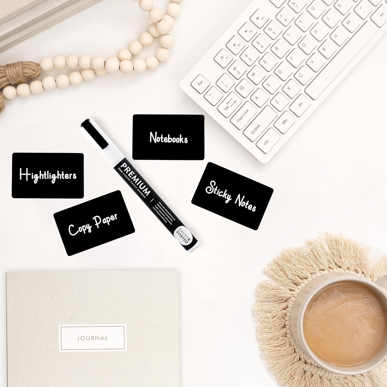 200 Chalkboard Labels for Storage Bins, Removable Black Stickers with Chalk Marker, Pantry Containers and Storage Bin Organization