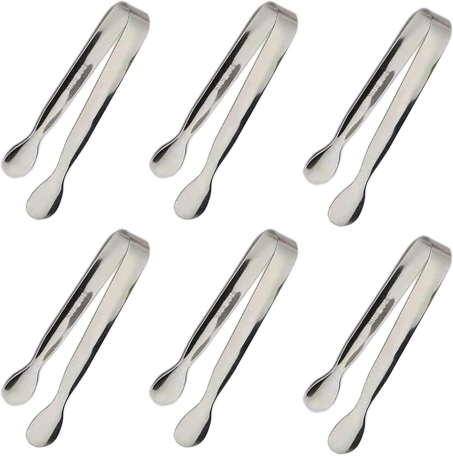 6PCS Ice Tongs Mini Sugar Tongs 4.25Inch Stainless Steel Small Serving Tong, Tiny Kitchen Tong for Appetizers,Tea Party, Coffee Bar, Desserts by Sunenlyst (Silver)
