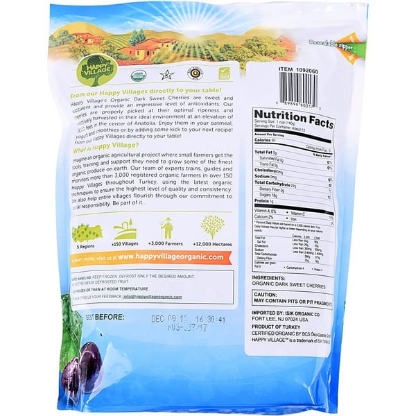 Happy Village Organic Dark Sweet Cherries, 64 oz